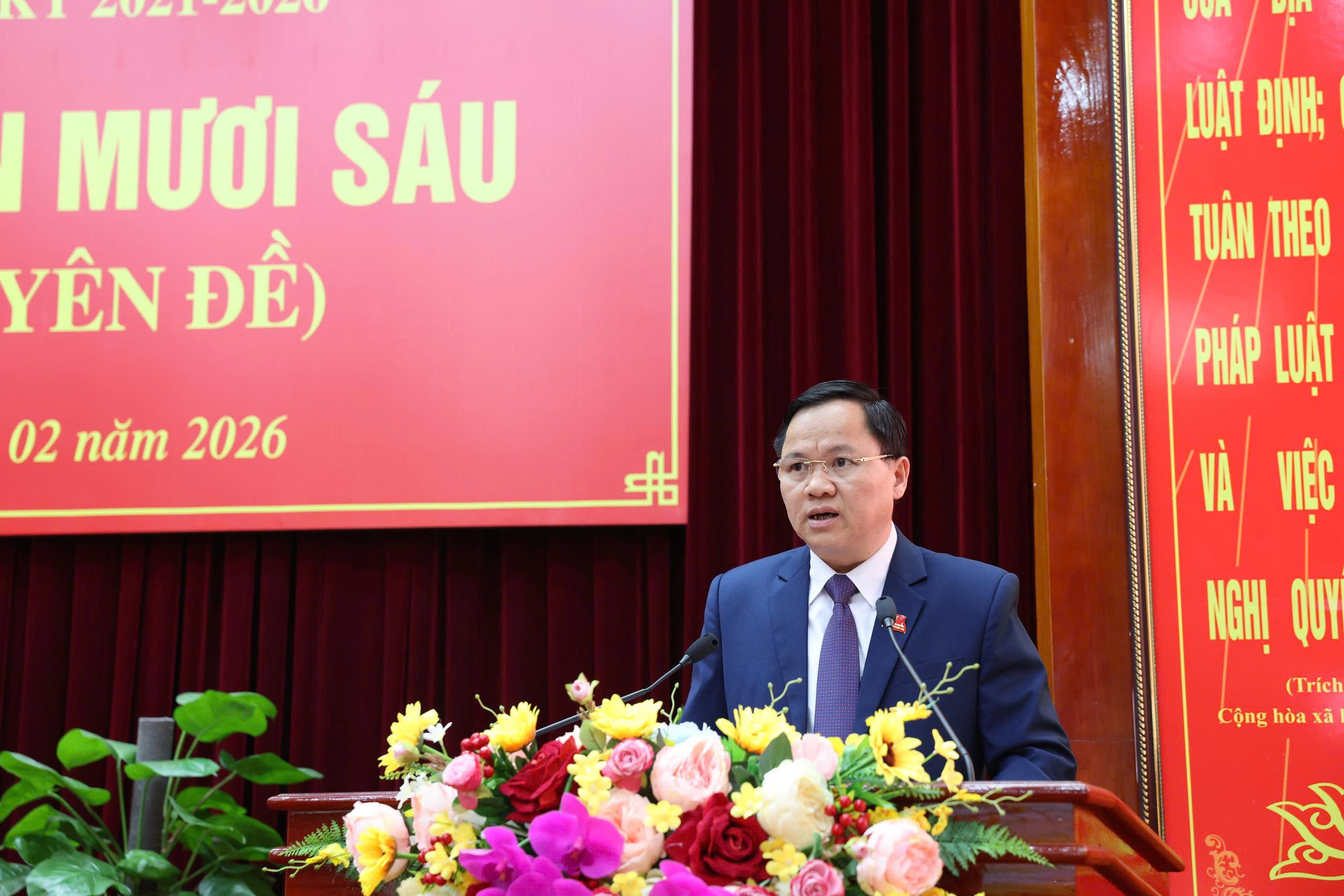 Chiều ngày 27/02/2026, HĐND tỉnh khóa XVII, nhiệm kỳ 2021-2026 tổ chức kỳ họp thứ bốn mươi sáu (kỳ họp chuyên đề) để xem xét, 05 nội dung nghị quyết thuộc thẩm quyền.