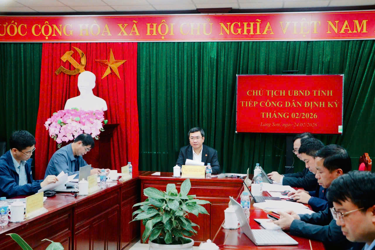 Sáng ngày 24/02/2026, đồng chí Nguyễn Cảnh Toàn, Chủ tịch UBND tỉnh, Chủ trì tiếp công dân trực tiếp tại Trụ sở tiếp công dân của tỉnh. Tham dự tiếp công dân gồm có đồng chí Triệu Quang Huy, Phó trưởng Đoàn chuyên trách phụ trách ĐBQH tỉnh; đồng chí Vương Lê Hoàng, Phó trưởng Ban Pháp chế HĐND tỉnh, đại biểu HĐND tỉnh; đại diện lãnh đạo Ban Tuyên giáo và Dân vận Tỉnh ủy; Ủy ban MTTQ Việt Nam tỉnh; đại diện lãnh đạo các Sở, ngành: Thanh tra tỉnh, Nông nghiệp và Môi trường, Văn phòng Ủy ban nhân dân tỉnh, Trưởng ban tiếp công dân của tỉnh, Trung tâm phát triển quỹ đất tỉnh; UBND các xã: Tuấn Sơn, Chiến Thắng, Lộc Bình, Na Dương và UBND phường Kỳ Lừa.
