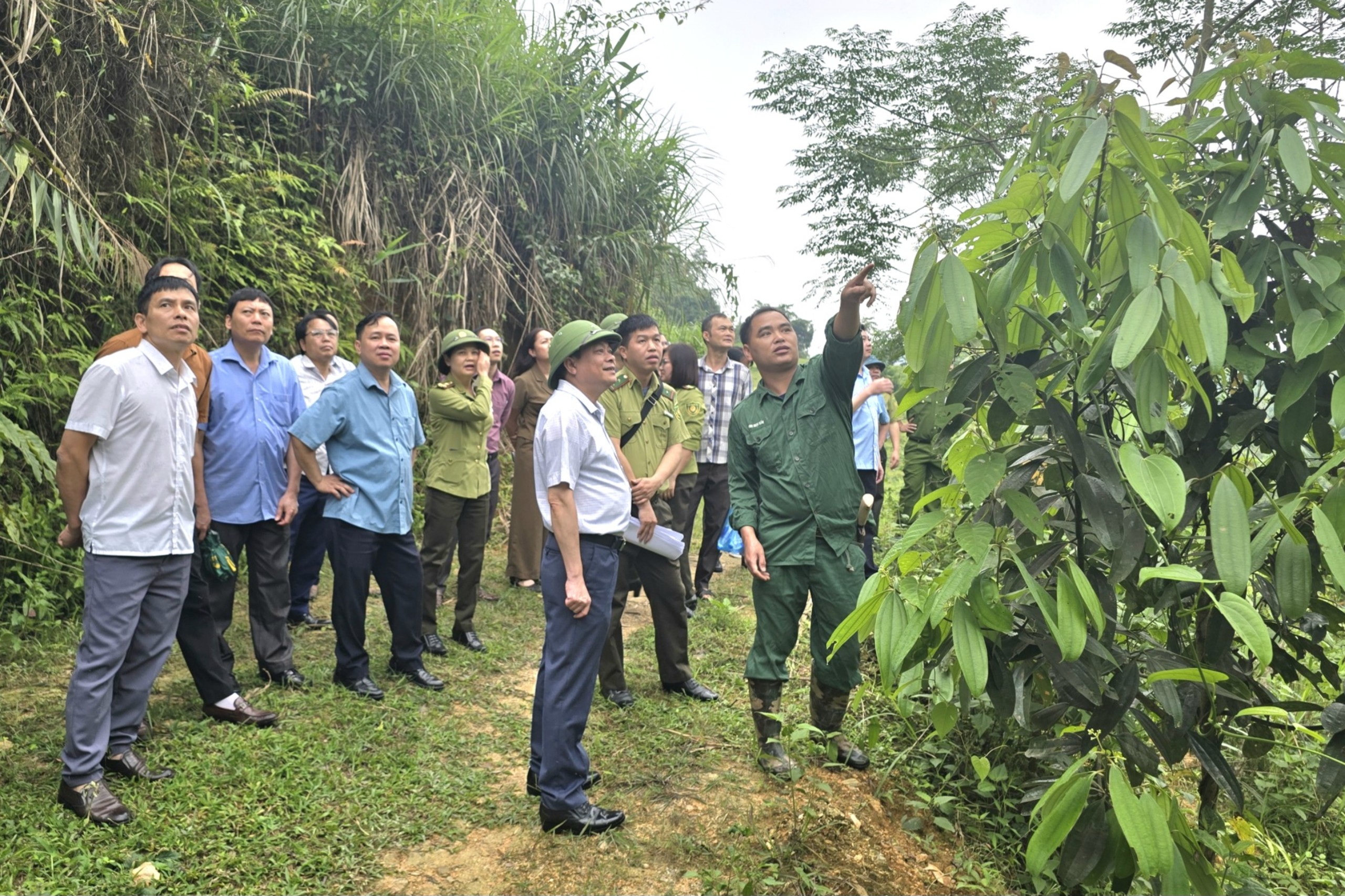 Đoàn đã đi thực địa, kiểm tra hiện trạng rừng đề nghị thẩm định hồ sơ xin cải tạo rừng sản xuất là rừng tự nhiên không có khả năng tự phục hồi của hộ ông Hoàng Đức Ngân, thôn Tân Tiến, xã Tân Hòa, huyện Bình Gia. Đoàn đã trao đổi, nắm tình hình về quá trình tổ chức thực hiện kế hoạch số 231/KH-UBND, ngày 09/11/2022 của UBND tỉnh thực hiện Nghị quyết số 95-NQ/TU ngày 20/9/2022 của Ban Thường vụ Tỉnh ủy về cải tạo rừng sản xuất là rừng tự nhiên không có khả năng tự phục hồi để phát triển kinh tế lâm nghiệp trên địa bàn tỉnh, giai đoạn 2022 – 2030 của huyện, của xã.