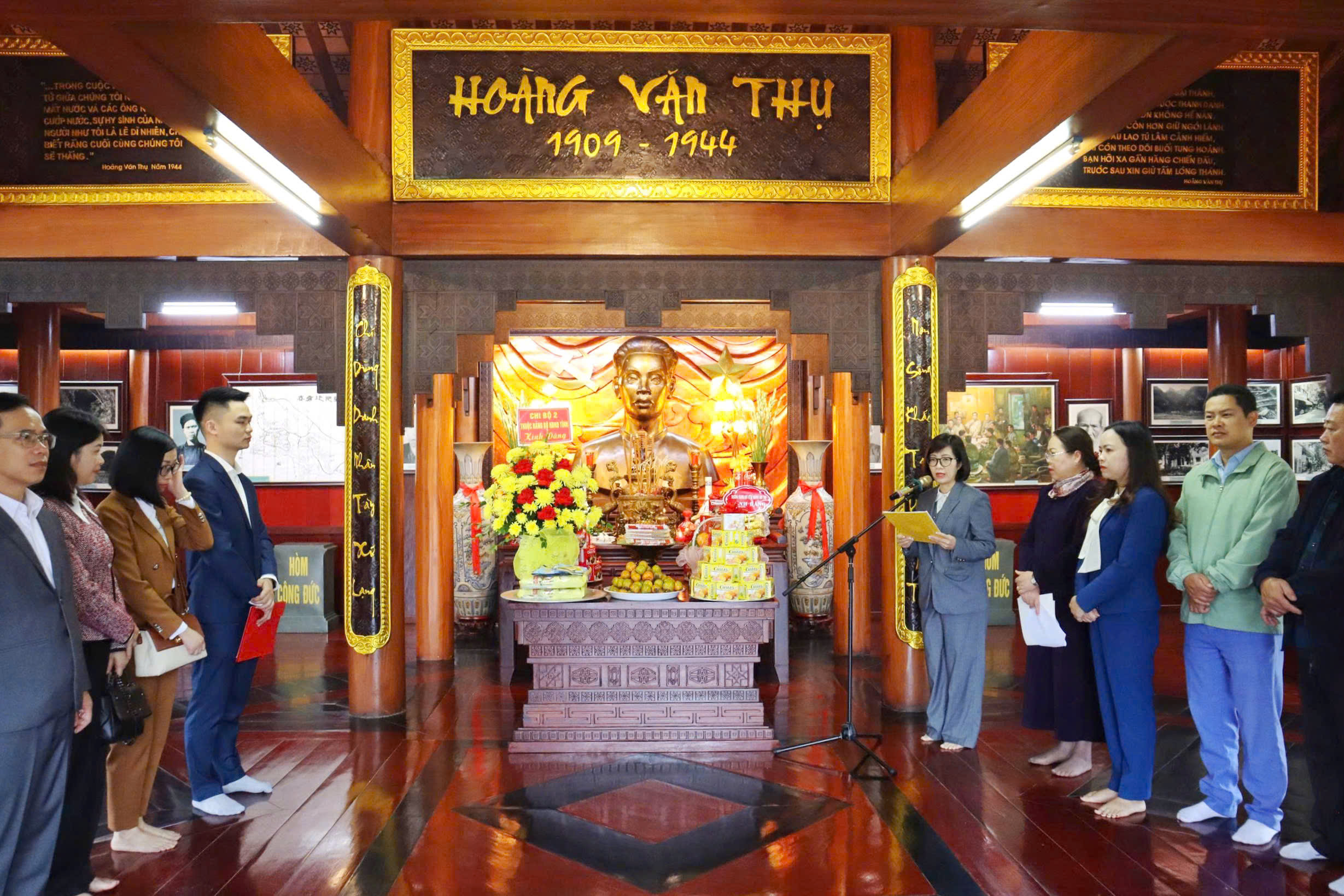 Tại di tích, các đảng viên Chi bộ đã thành kính dâng hương, bày tỏ sự biết ơn, tri ân công lao về cuộc đời hoạt động cách mạng của đồng chí Hoàng Văn Thụ trong suốt chặng đường hoạt động yêu nước và cách mạng (1928 – 1944). Thay mặt đảng viên Chi bộ, đồng chí Hoàng Thúy Duyên, Bí thư chi bộ, Chánh Văn phòng đã báo cáo khái quát về thành tích công tác của Chi bộ, cơ quan, đồng thời xin hứa mãi vững niềm tin vào sự lãnh đạo của Đảng Cộng sản Việt Nam, nguyện đi theo con đường cách mạng mà Đảng và Bác và đồng chí Hoàng Văn Thụ đã chọn; không ngừng học tập và làm theo tư tưởng, đạo đức, phong cách Hồ Chí Minh; nêu cao quyết tâm chính trị, nỗ lực vượt qua mọi khó khăn, thách thức, hoàn thành xuất sắc nhiệm vụ được giao.