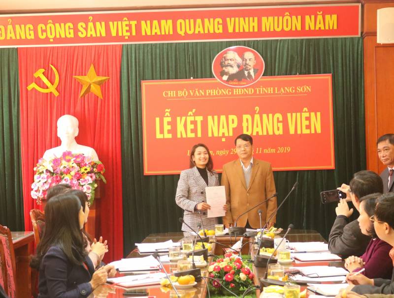 Thay mặt Chi bộ, đồng chí Hoàng Văn Hoàn, Phó Bí thư Chi bộ đã trao quyết định kết nạp Đảng viên cho quần chúng Hoàng Thị Thu Huyền, nhân viên phòng Hành chính – Tổ chức – Quản trị thuộc Văn phòng HĐND tỉnh. Để được vinh dự đứng trong hàng ngũ của Đảng, quần chúng Hoàng Thị Thu Huyền đã không ngừng phấn đấu, tu dưỡng, rèn luyện theo lý tưởng của Đảng, hoàn thành tốt nhiệm vụ được giao; được chi bộ, các tổ chức đoàn thể và quần chúng tín nhiệm cao.