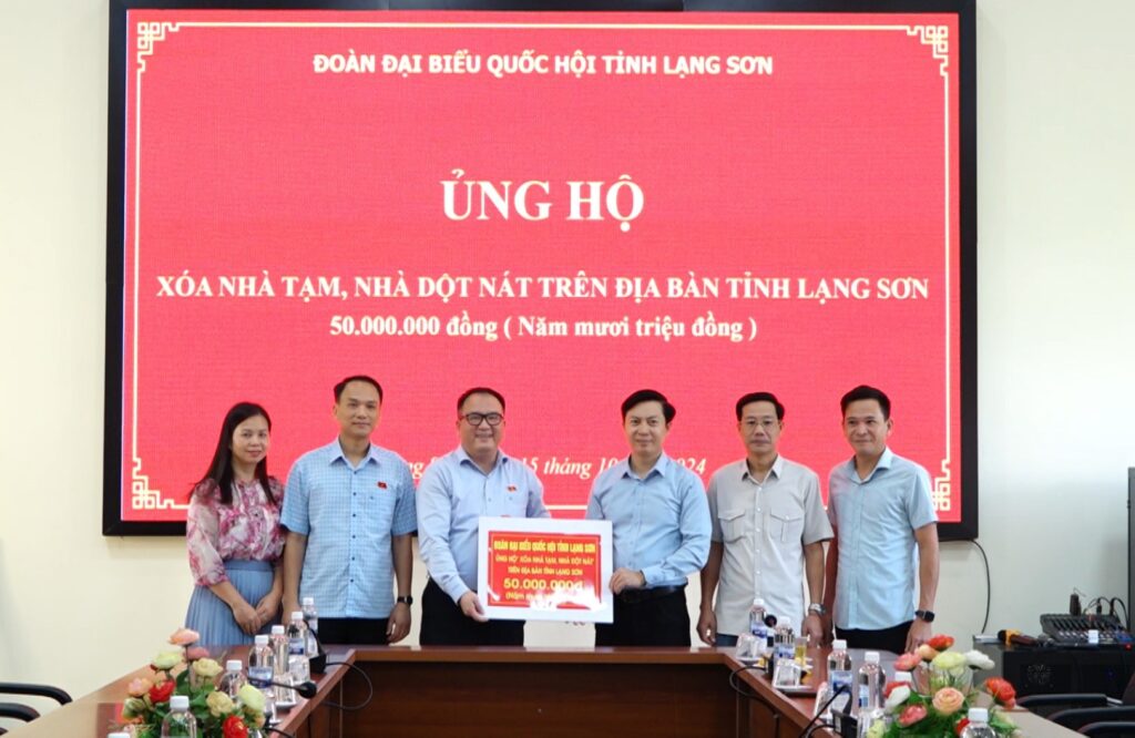 Thực hiện phong trào thi đua xóa nhà tạm, nhà dột nát cho hộ nghèo, hộ cận nghèo do Thủ tướng Chính phủ phát động và Thư ngỏ của đồng chí Bí thư Tỉnh ủy Lạng Sơn, Đoàn ĐBQH tỉnh đã huy động từ các tập thể, cá nhân nhà hảo tâm quyên góp để giúp đỡ, hỗ trợ phong trào thi đua xóa nhà tạm, nhà dột nát trên địa bàn tỉnh Lạng Sơn. Trong chương trình, Đoàn ĐBQH tỉnh đã trao kinh phí 50.000.000 đồng (năm mươi triệu đồng) cho lãnh đạo UBMTTQVN tỉnh Lạng Sơn và khẳng định ý nghĩa của việc huy động nguồn lực để ủng hộ cho tỉnh Lạng Sơn, mong tỉnh sớm hoàn thành mục tiêu xóa nhà tạm, nhà dột nát đã đề ra.