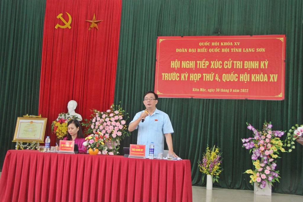 Sáng ngày 30/9/2022, Đoàn đại biểu Quốc hội tỉnh gồm các đồng chí: Triệu Quang Huy, Tỉnh ủy viên, Uỷ viên Uỷ ban Tài chính, Ngân sách của Quốc hội, Phó Trưởng Đoàn chuyên trách Đoàn đại biểu Quốc hội tỉnh; Chu Thị Hồng Thái, Phó Chánh Văn phòng Hội Nông dân tỉnh, đại biểu Quốc hội tỉnh đã tiếp xúc cử tri tại cụm 3 xã: Kiên Mộc, Bính Xá, Bắc Xa của huyện Đình Lập.Tham gia tiếp xúc cử tri có lãnh đạo một số Sở, ngành của tỉnh và lãnh đạo huyện Đình Lập.