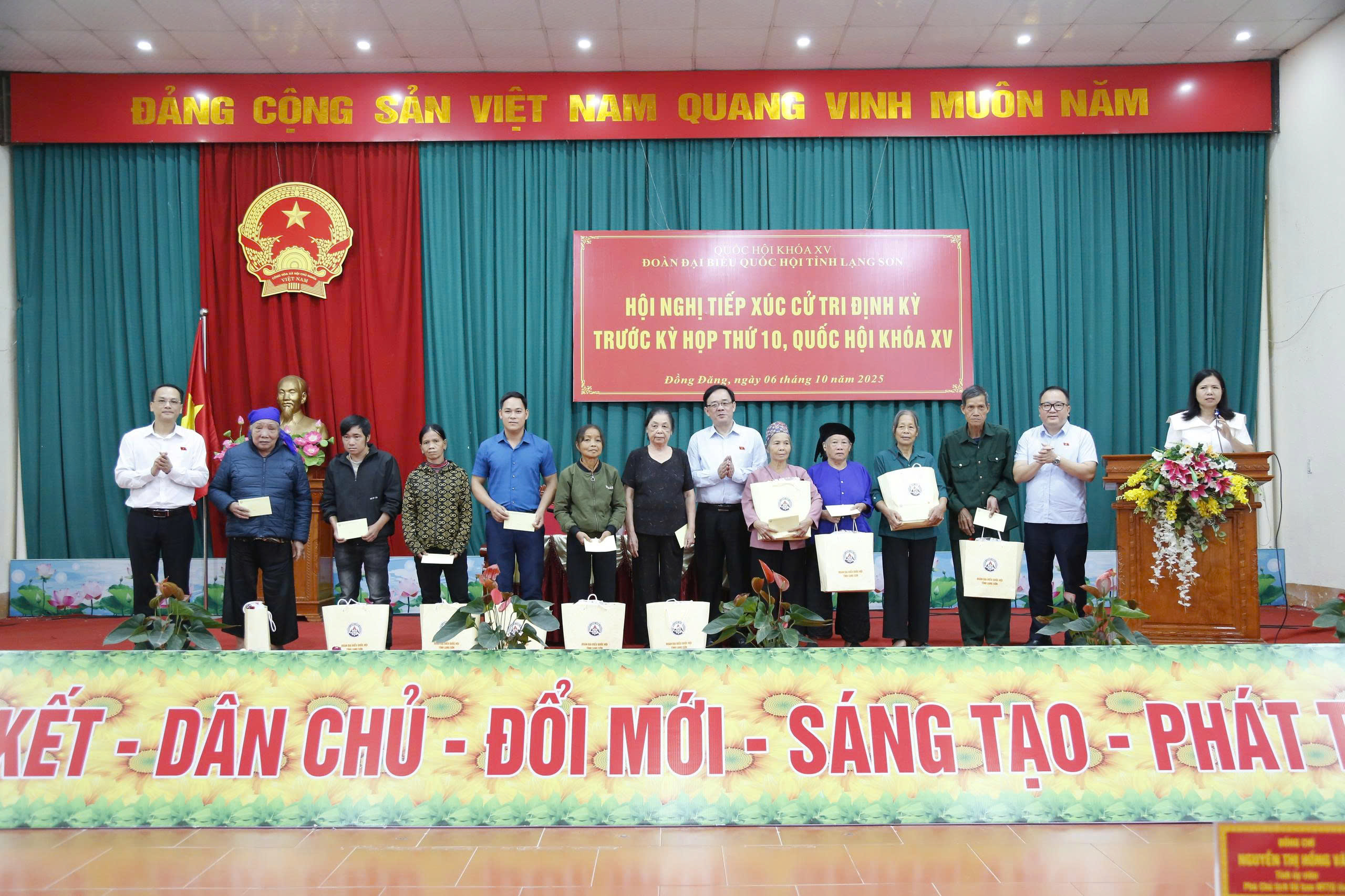 Nhân dịp tiếp xúc cử tri định kỳ trước kỳ họp thứ 10, Quốc hội khóa XV, Đoàn ĐBQH tỉnh đã tặng 10 suất quà cho các gia đình chính sách, người có công trên địa bàn xã Đồng Đăng và tặng 10 suất quà cho các gia đình chính sách, người có công trên địa bàn phường Đông Kinh.