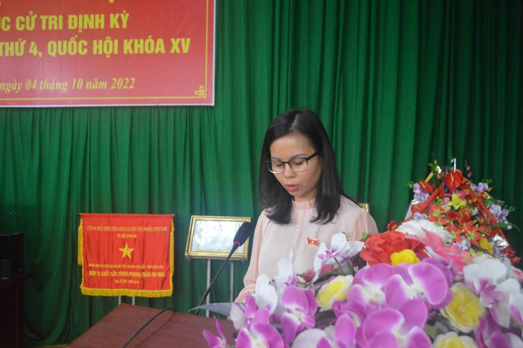 Tại hội nghị, Đoàn đại biểu Quốc hội tỉnh đã báo cáo với cử tri về dự kiến nội dung, chương trình kỳ họp thứ 4, Quốc hội khóa XV và tình hình hoạt động 9 tháng đầu năm của Đoàn đại biểu Quốc hội tỉnh. Theo đó, kỳ họp sẽ được tổ chức theo hình thức họp tập trung tại Hà Nội từ ngày 20/10 đến hết ngày 18/11/2022. Tại kỳ họp, Quốc hội sẽ xem xét thông qua 07 dự án luật, một số dự thảo nghị quyết và cho ý kiến 07 dự án luật. Đồng thời, Quốc hội xem xét, quyết định các vấn đề kinh tế – xã hội, ngân sách nhà nước, giám sát và các vấn đề quan trọng khác như: Các báo cáo đánh giá kết quả thực hiện kế hoạch phát triển kinh tế – xã hội, dự toán ngân sách nhà nước, kế hoạch đầu tư công vốn ngân sách nhà nước năm 2022; quyết định kế hoạch phát triển kinh tế – xã hội, dự toán ngân sách nhà nước và phương án phân bổ ngân sách trung ương năm 2023; tiến hành chất vấn và trả lời chất vấn của đại biểu Quốc hội; xem xét giải pháp xử lý vướng mắc, bất cập tại một số trạm thu phí/dự án BOT; tiến hành giám sát chuyên đề “Việc thực hiện chính sách, pháp luật về thực hành tiết kiệm, chống lãng phí giai đoạn 2016-2021”.