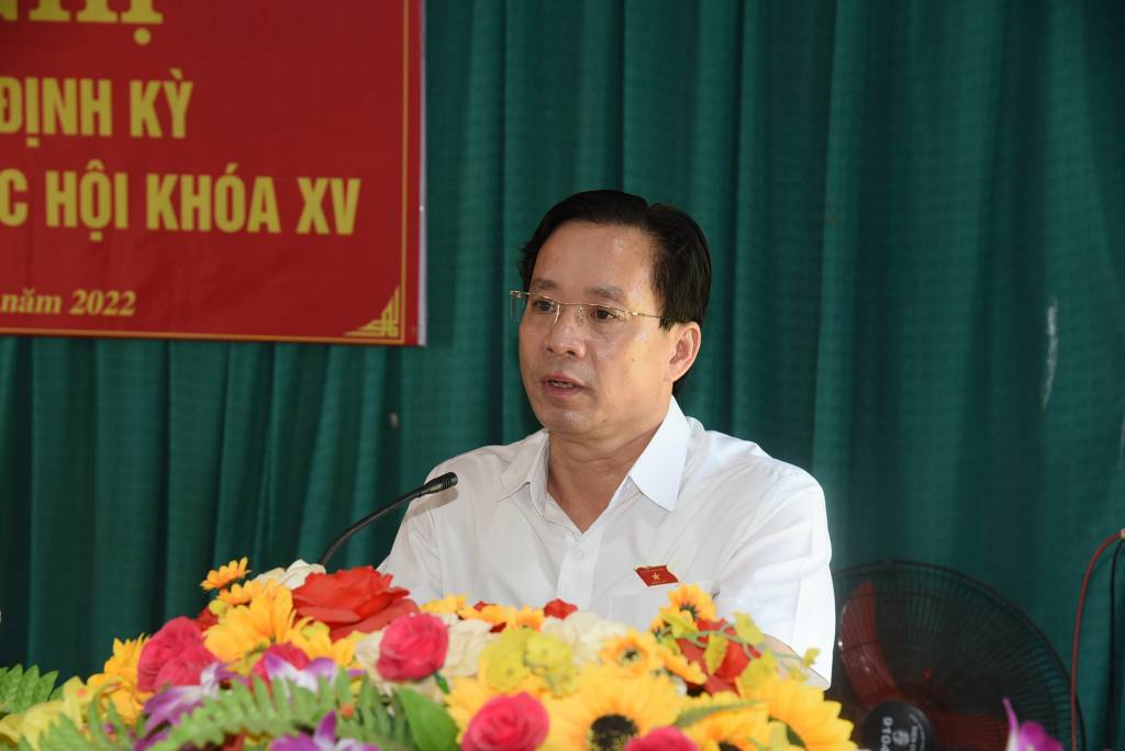 Đồng chí Hoàng Văn Nghiệm, Phó Bí thư Thường trực Tỉnh ủy, Ủy viên Ủy ban Kinh tế của Quốc hội, Trưởng đoàn đại biểu Quốc hội khóa XV tỉnh phát biểu tại buổi tiếp xúc cử tri
