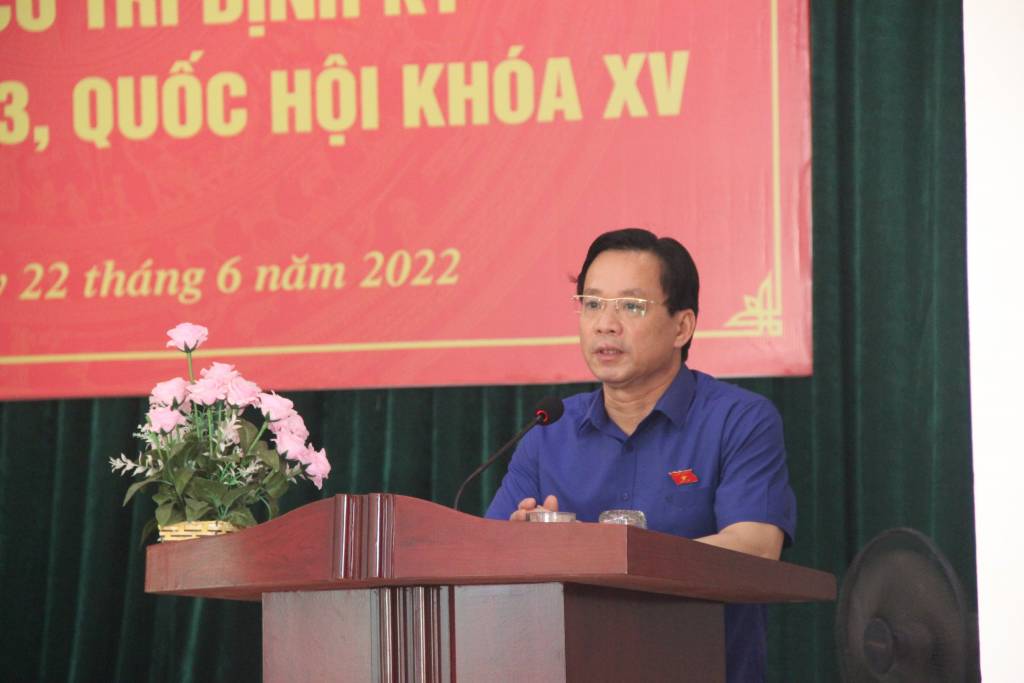 Tại Hội nghị, đại biểu Lưu Bá Mạc đại diện cho Đoàn đại biểu Quốc hội tỉnh đã báo cáo tới cử tri kết quả kỳ họp thứ ba, Quốc hội khóa XV. Sau 19 ngày làm việc khẩn trương, khoa học với trách nhiệm cao, kỳ họp thứ ba, Quốc hội khóa XV đã hoàn thành toàn bộ chương trình đề ra và thành công tốt đẹp. Tại kỳ họp, Đoàn đại biểu Quốc hội tỉnh đã phát huy tinh thần trách nhiệm cao, tích cực, tập trung nghiên cứu nắm bắt thực tiễn, đồng thời trên cơ sở các ý kiến, kiến nghị của cử tri các đại biểu đã có những ý kiến hết sức tâm huyết, xác đáng tại kỳ họp của Quốc hội. Đoàn đại biểu Quốc hội tỉnh đã có 6 lượt ý kiến tham gia phát biểu tại hội trường, 23 lượt ý kiến tham gia phát biểu tại tổ, 01 lượt chất vấn và thực hiện tốt các hoạt động bên lề kỳ họp.
