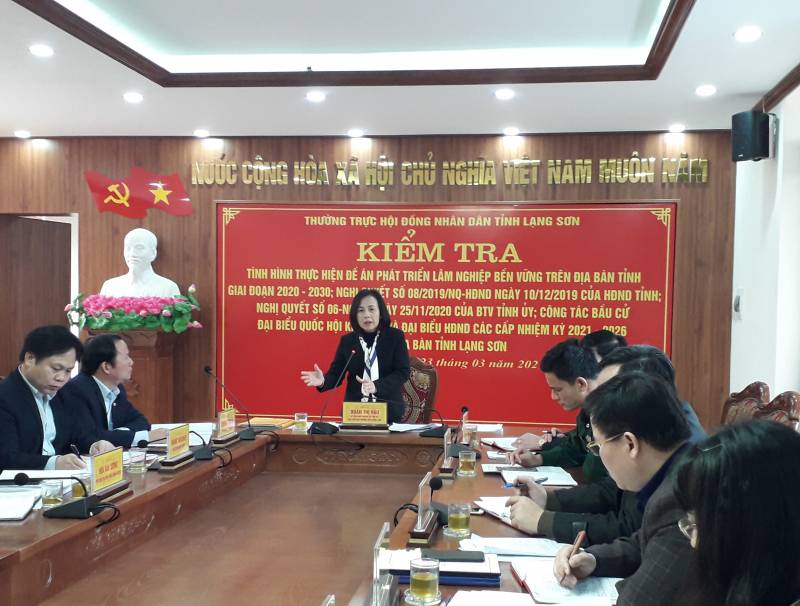 Trong các ngày 23, 24/3/2021, Đoàn kiểm tra của Thường trực HĐND tỉnh do đồng chí Đoàn Thị Hậu, Ủy viên Ban Thường vụ Tỉnh ủy, Phó Chủ tịch Thường trực HĐND tỉnh Lạng Sơn làm Trưởng đoàn đã tổ chức kiểm tra tình hình triển khai thực hiện đối với các nội dung: Đề án phát triển lâm nghiệp bền vững trên địa bàn tỉnh Lạng Sơn giai đoạn 2020-2030; Nghị quyết số 08/2019/NQ-HĐND ngày 10/12/2019 của HĐND tỉnh về chính sách đặc thù khuyến khích đầu tư, phát triển hợp tác, liên kết sản xuất và tiêu thụ sản phẩm nông nghiệp, nông thôn trên địa bàn tỉnh Lạng Sơn giai đoạn 2020-2025; Nghị quyết 06-NQ/TU ngày 25/11/2020 của Ban Thường vụ Tỉnh ủy về xây dựng và phát triển vùng sản xuất hàng hóa tập trung gắn với chuỗi liên kết sản xuất, tiêu thụ sản phẩm, xây dựng thương hiệu trong lĩnh vực nông nghiệp giai đoạn 2020-2030; công tác chuẩn bị bầu cử đại biểu Quốc hội khóa XV và đại biểu HĐND các cấp, nhiệm kỳ 2021-2026 tại các huyện Lộc Bình, Cao Lộc, Chi Lăng, Hữu Lũng. Làm việc với Đoàn có các đồng chí lãnh đạo Huyện ủy, UBND huyện, Ủy ban MTTQ Việt Nam huyện và một số cơ quan chuyên môn của huyện.