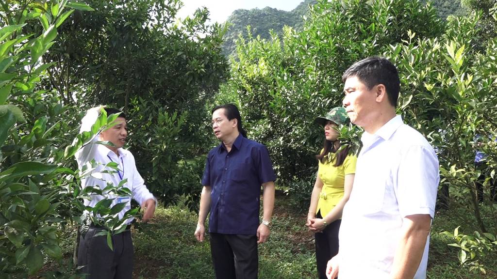 Đ/c Hoàng Văn Nghiệm thăm quan mô hình trồng Cam đường canh tại xã Tân Lập, huyện Bắc Sơn