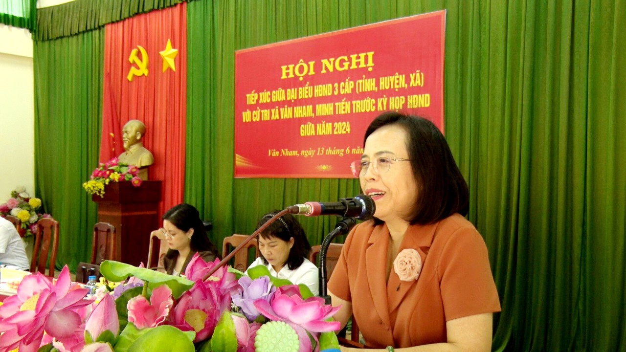 Đồng chí Đoàn Thị Hậu, Ủy viên BTV Tỉnh ủy, Chủ tịch HĐND tỉnh, tiếp xúc cử tri của đại biểu HĐND 3 cấp (tỉnh, huyện, xã) trước thường lệ giữa năm 2024 (kỳ họp thứ hai mươi bẩy) HĐND tỉnh khóa XVII, tại xã Vân Nham, huyện Hữu Lũng