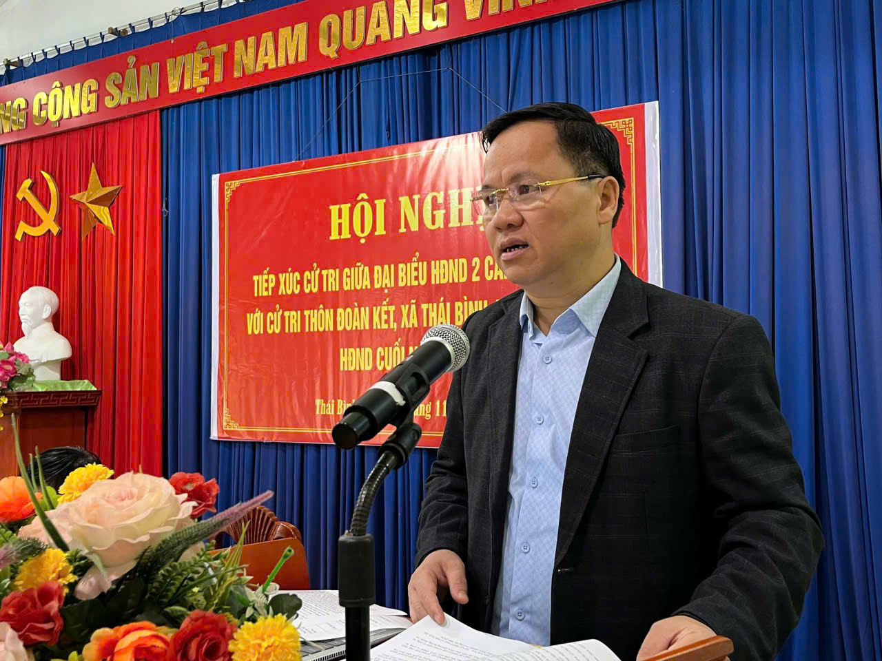Đại biểu Hoàng Văn Tài, Tổ đại biểu HĐND tỉnh số 11 tiếp xúc cử tri trước kỳ họp thường lệ cuối năm 2025 HĐND tỉnh khóa XVII, tại thôn Đoàn Kết, xã Thái Bình.