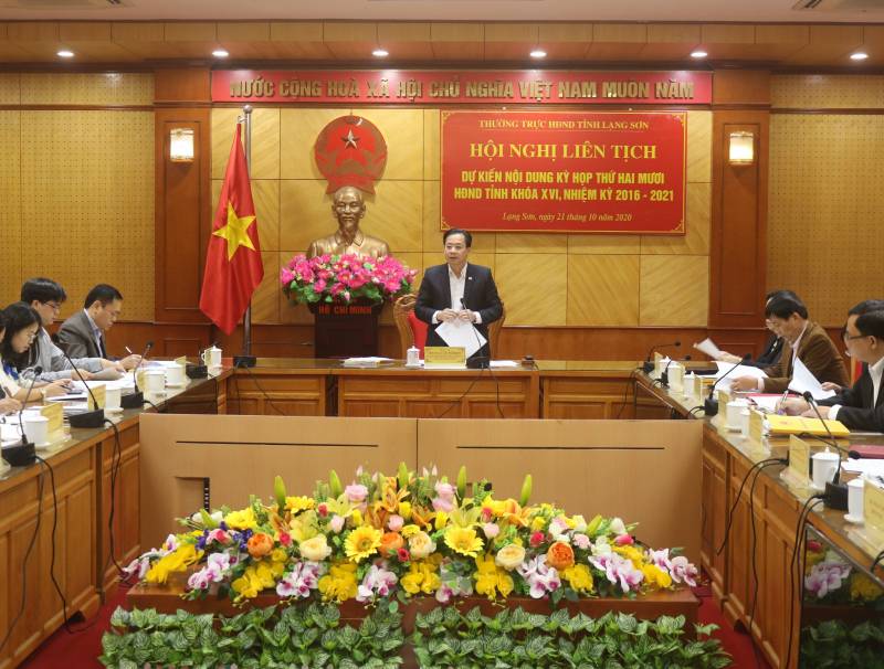 Sáng ngày 21/10/2020, Thường trực HĐND tỉnh đã tổ chức Hội nghị liên tịch thống nhất nội dung, chương trình tổ chức kỳ họp thứ hai mươi, HĐND tỉnh khóa XVI, nhiệm kỳ 2016-2021. Đồng chí Hoàng Văn Nghiệm, Phó Bí thư Thường trực Tỉnh ủy, Chủ tịch HĐND tỉnh chủ trì hội nghị. Tham dự hội nghị có các đồng chí lãnh đạo HĐND tỉnh; Chủ tịch UBND tỉnh, Phó Chủ tịch UBMTTQ tỉnh; lãnh đạo các Ban của HĐND tỉnh; lãnh đạo các Sở: Tư pháp, Kế hoạch và Đầu tư, Tài chính, Nội vụ, Nông nghiệp và Phát triển nông thôn; Giáo dục và Đào tạo, Y tế, Văn hóa – Thể thao và Du lịch, Tài nguyên và Môi trường, Thông tin và Truyền thông; lãnh đạo Bộ Chỉ huy Quân sự tỉnh, Công an tỉnh; lãnh đạo và chuyên viên của Văn phòng HĐND tỉnh, Văn phòng UBND tỉnh.