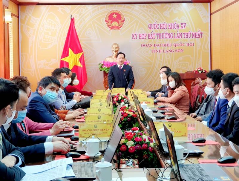 Các đại biểu tại điểm cầu tỉnh Lạng Sơn dự phiên khai mạc Kỳ họp bất thường lần thứ nhất, Quốc hội khóa XV