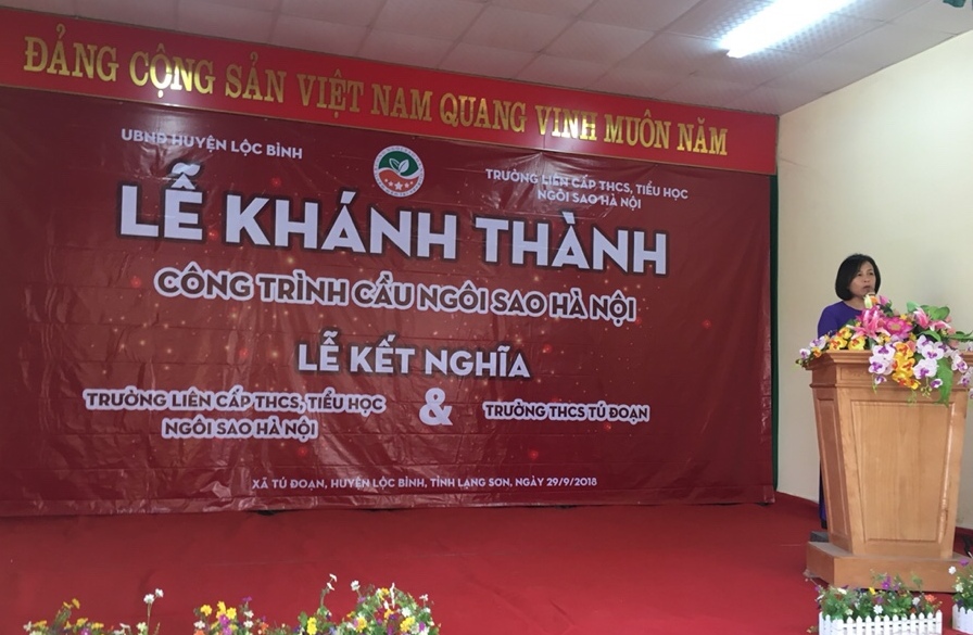 Ngày 29/9/2018 Ủy ban nhân dân huyện Lộc Bình và Trường liên cấp THCS, tiểu học Ngôi sao Hà Nội đã tổ chức Lễ khánh thành công trình cầu Ngôi sao Hà Nội, dự Lễ khánh thành có đồng chí Đoàn Thị Hậu, Tỉnh ủy viên, Phó Chủ tịch HĐND tỉnh, đồng chí Lương Trọng Quỳnh, Bí thư Huyện ủy, Chủ tịch UBND huyện Lộc Bình, nhà giáo Phạm Bích Ngà, người sáng lập và điều hành Trường liên cấp THCS, tiểu học Ngôi sao Hà Nội cùng đông đảo nhân dân, giáo viên và học sinh các cấp xã Tú Đoạn, huyện Lộc Bình, phụ huynh, học sinh và giáo viên Trường liên cấp THCS, tiểu học Ngôi sao Hà Nội.