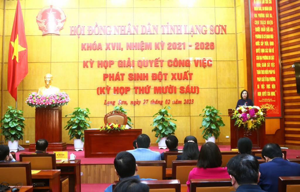 Phát biểu bế mạc kỳ họp, đồng chí Đoàn Thị Hậu, Ủy viên Ban Thường vụ Tỉnh ủy, Chủ tịch HĐND tỉnh đề nghị: UBND tỉnh tiếp tục bám sát sự chỉ đạo của chính phủ, các bộ, ngành Trung ương, đồng thời chỉ đạo các cơ quan chuyên môn phối hợp chặt chẽ với Ban Quản lý dự án Thăng Long, các cơ quan chuyên môn thuộc Bộ Giao thông vận tải hoàn thiện hồ sơ thuộc thẩm quyền của tỉnh để dự án sớm được phê duyệt chủ trương đầu tư; Đồng thời chỉ đạo UBND huyện Lộc Bình và huyện Đình Lập phối hợp với cơ quan chuyên môn rà soát chỉ tiêu sử dụng đất giao thông, quy hoạch, kế hoạch sử dụng đất theo đúng hướng tuyến dự án, nhất là diện tích các loại đất, diện tích rừng. Xem xét thực hiện các thủ tục điều chỉnh (nếu có) làm căn cứ thu hồi đất, bồi thường, giải phóng mặt bằng và thực hiện dự án; chủ động xây dựng kế hoạch tuyên truyền, vận động để người dân hiểu rõ về chủ trương, mục tiêu, lợi ích của dự án đem lại, tạo sự đồng thuận cao trong Nhân dân khu vực thực hiện dự án đi qua để công tác giải phóng mặt bằng hoàn thành đúng tiến độ, kịp thời bàn giao cho nhà đầu tư triển khai thi công./.