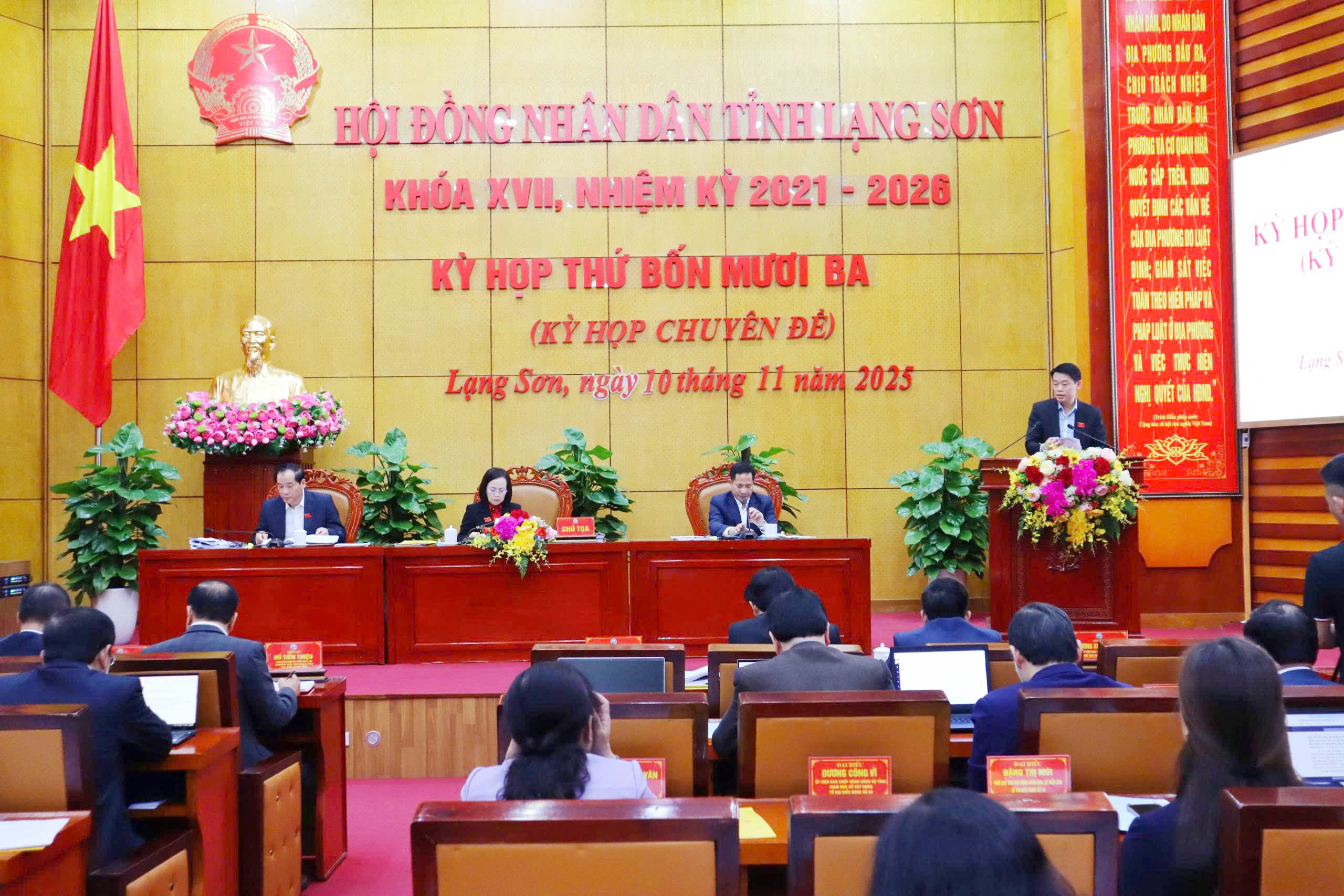 Tại kỳ họp, các đại biểu HĐND tỉnh cũng đã thảo luận, nhất trí và biểu quyết thông qua 10 nghị quyết chuyên đề khác, gồm 01 nghị quyết về công tác nhân sự; 03 nghị quyết về cơ chế chính sách; 03 nghị quyết về đầu tư công, ngân sách, chuyển mục đích sử dụng rừng và 04 nghị quyết về quy định thẩm quyền, ủy quyền và bãi bỏ, sửa đổi nghị quyết (cụ thể như: quy định mức thu học phí đối với các cơ sở giáo dục mầm non, giáo dục phổ thông công lập năm học 2025 – 2026 trên địa bàn tỉnh Lạng Sơn; ban hành quy định nội dung, mức chi thực hiện cho hoạt động phòng, chống bạo lực gia đình trên địa bàn tỉnh Lạng Sơn; ban hành quy định mức hỗ trợ sản xuất nông nghiệp để khôi phục sản xuất vùng bị thiệt hại do thiên tai, dịch hại thực vật; mức hỗ trợ khắc phục dịch bệnh động vật trên địa bàn tỉnh Lạng Sơn; về điều chỉnh kế hoạch đầu tư công và kế hoạch vốn thực hiện các chương trình mục tiêu quốc gia giai đoạn 2021-2025 và năm 2025; về việc điều chỉnh Nghị quyết số 41/NQ-HĐND ngày 15/7/2025 của Hội đồng nhân dân tỉnh về điều chỉnh dự toán thu ngân sách nhà nước trên địa bàn, dự thoán thu, chi ngân sách địa phương, phương án phân bổ dự toán ngân sách địa phương năm 2025; quyết định chủ trương chuyển mục đích sử dụng rừng sang mục đích khác trên địa bàn tỉnh Lạng Sơn; Quy định thẩm quyền quyết định việc đầu tư, mua sắm các hoạt động ứng dụng công nghệ thông tin sử dụng kinh phí chi thường xuyên nguồn vốn ngân sách nhà nước thuộc phạm vi quản lý của tỉnh Lạng Sơn;  quy định phạm vi nhiệm vụ, quyền hạn của Chủ tịch UBND cấp xã được ủy quyền cho công chức thuộc UBND cấp xã thực hiện trong lĩnh vực chứng thực trên địa bàn tỉnh Lạng Sơn…).