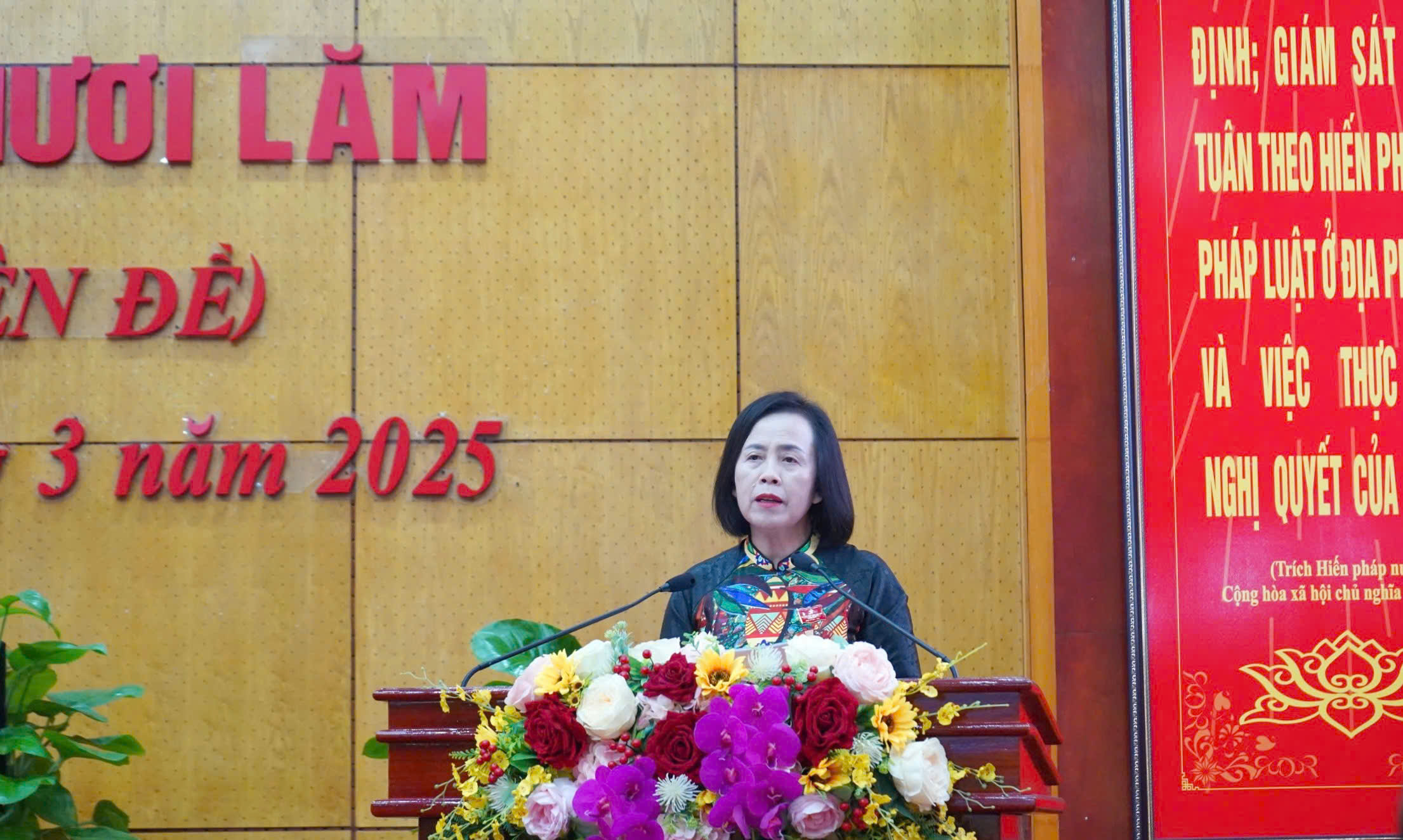 Đ/c Đoàn Thị Hậu, Phó Bí thư Thường trực Tỉnh ủy, Chủ tịch HĐND tỉnh phát biểu khai mạc kỳ họp