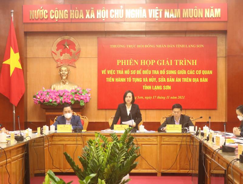 Sáng ngày 17/11/2021, Thường trực HĐND tỉnh đã tổ chức phiên họp nghe Viện Kiểm sát nhân dân tỉnh, Tòa án nhân dân tỉnh, Công an tỉnh giải trình về tình hình việc trả hồ sơ để điều tra bổ sung giữa các cơ quan tiến hành tố tụng và sửa, hủy bản án do nguyên nhân chủ quan địa bàn tỉnh Lạng Sơn, năm 2020-2021. Các đồng chí Đoàn Thị Hậu, Ủy viên Ban Thường vụ Tỉnh uỷ, Chủ tịch HĐND tỉnh; Đinh Hữu Học, Tỉnh ủy viên, Phó Chủ tịch HĐND tỉnh chủ trì phiên họp. Dự phiên họp có đồng chí Hồ Tiến Thiệu, Phó Bí thư Tỉnh uỷ, Chủ tịch UBND tỉnh; lãnh đạo các Ban HĐND tỉnh, đại diện lãnh đạo Uỷ ban MTTQ tỉnh; Ban Nội chính Tỉnh ủy, Viện Kiểm sát nhân dân tỉnh, Tòa án nhân dân tỉnh, Công an tỉnh; Tổ trưởng Tổ đại biểu HĐND tỉnh tại huyện Tràng Định; Lãnh đạo Văn phòng Đoàn ĐBQH và HĐND tỉnh và chuyên viên các phòng chuyên môn.