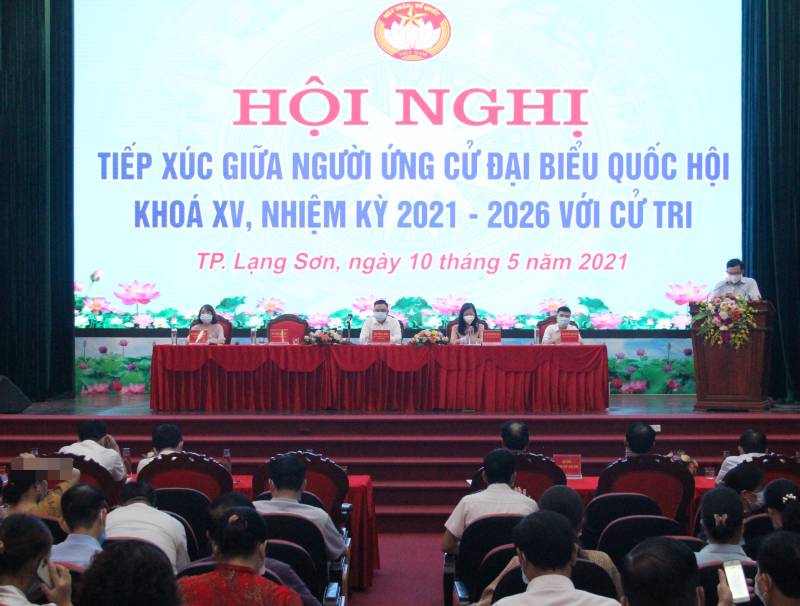 Ngày 10/5/2021, tại hội trường Trung tâm thành phố Lạng Sơn, các ứng cử viên đại biểu Quốc hội (ĐBQH) khóa XV, nhiệm kỳ 2021 – 2026, thuộc đơn vị bầu cử số 2 đã tiếp xúc cử tri (TXCT) vận động bầu cử.