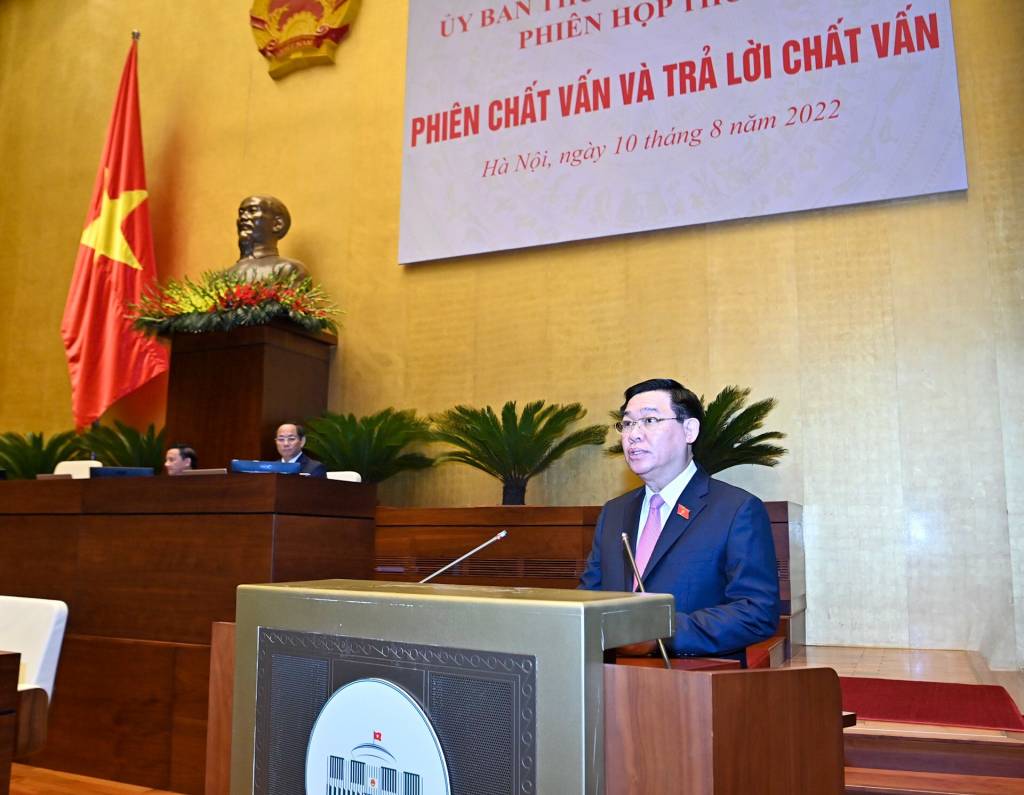Ngày 10/8/2022, tại phiên họp thứ 14, Ủy ban Thường vụ Quốc hội, Chủ tịch Quốc hội Vương Đình Huệ đã chủ trì hoạt động chất vấn và trả lời chất vấn nhóm vấn đề thuộc lĩnh vực, trách nhiệm của Bộ Công an và Bộ Văn hoá, Thể thao và Du lịch. Phiên chất vấn và trả lời chất vấn được kết nối trực tuyến tới 62 Đoàn đại biểu Quốc hội (ĐBQH) các tỉnh, thành phố trong cả nước.