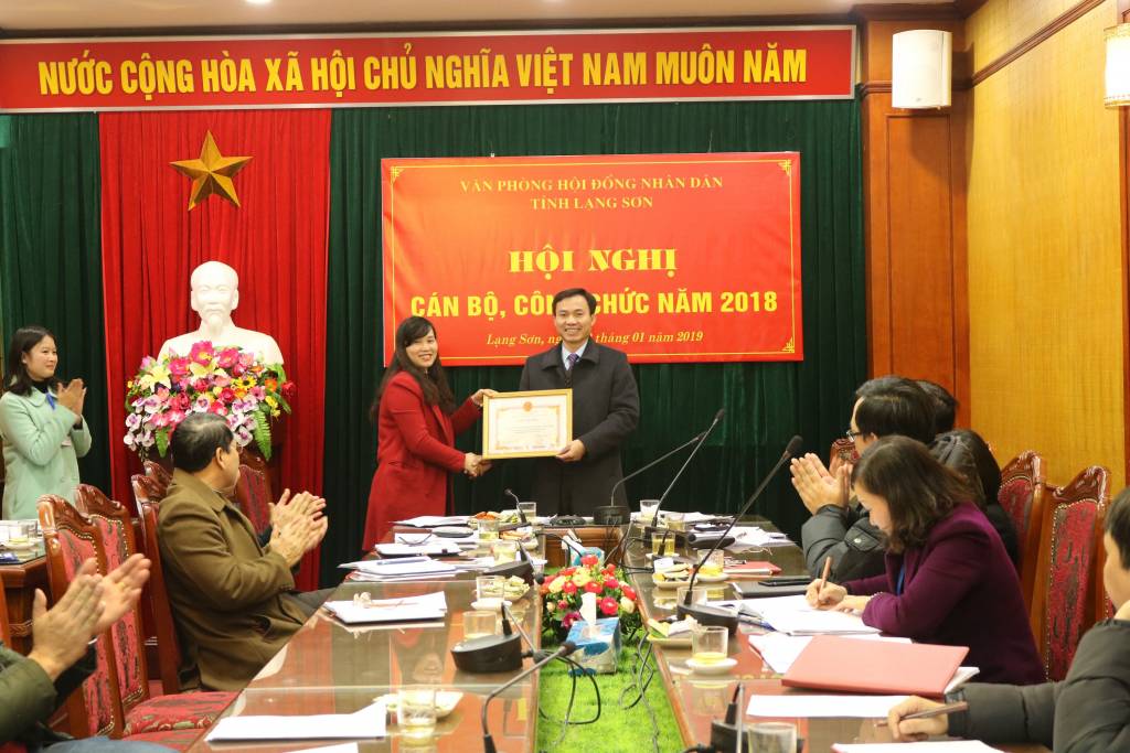 Tại hội nghị, đồng chí Chánh Văn phòng đã trao Giấy khen cho 01 tập thể và 13 cá nhân có thành tích xuất sắc trong công tác năm 2018.